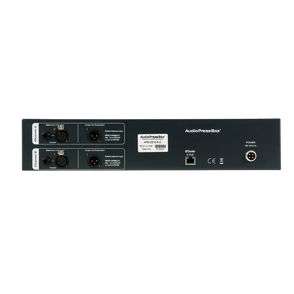 - 2-channel DANTE input with high-quality digital-to-analogue converter